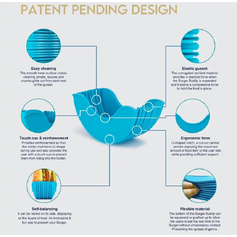 GripShell  Reusable Silicone Burger Holder – Contact-Free Sandwich Clip for Clean & Convenient Eatin